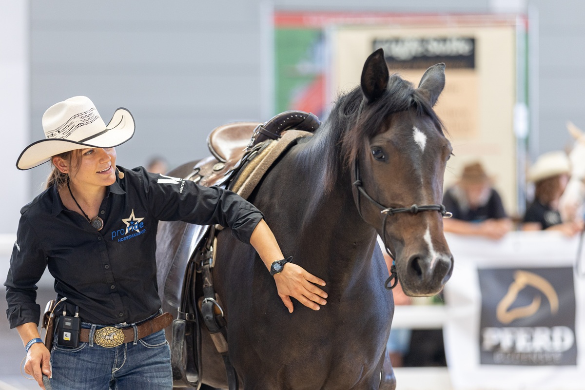 Insgesamt eine sehr schöne Messe. Ich hätte nur einen Kritikpunkt, der mich wirklich ärgert. Auch beim Westernreiten, wie generell bei den meisten Reitsportarten, ist der Frauenanteil sehr hoch bzw. übersteigt die Zahl der männlichen Reiter. Im Profibereich mag das Verhältnis noch umgekehrt sein, aber auch hier steigt der Frauenanteil. Warum also repräsentieren die Werbeplakate immer nur coole Cowboys, wo doch in allen Westerndisziplinen auch überaus erfolgreiche und ebenso coole Cowgirls unterwegs sind? Ich würde mir wirklich wünschen, dass auf den künftigen Werbeplakaten endlich auch Westernreiterinnen vertreten sind und das Westernreiten als seriöse Sportart vom ewig eingestaubten und falschen John-Wayne-Image wegkommt. Vielen Dank und mit besten Grüßen Irena Blaha (begeisterte und langjährige Westernreiterin)