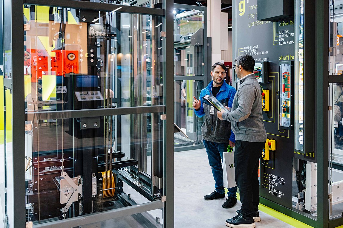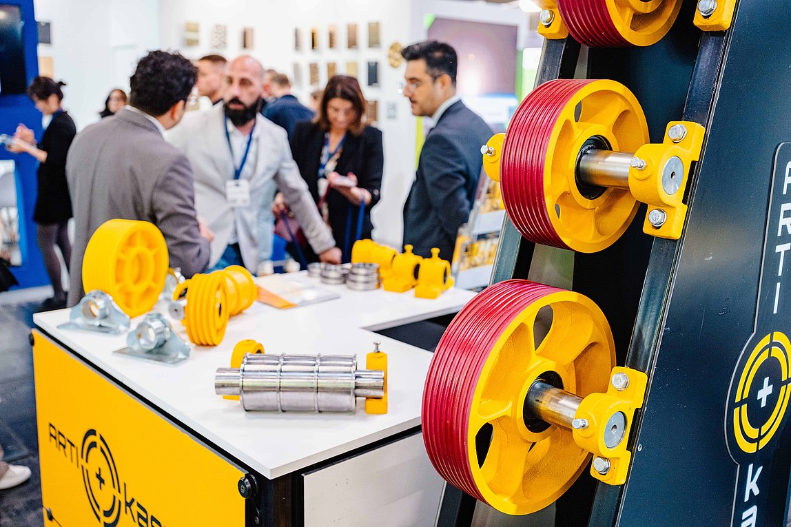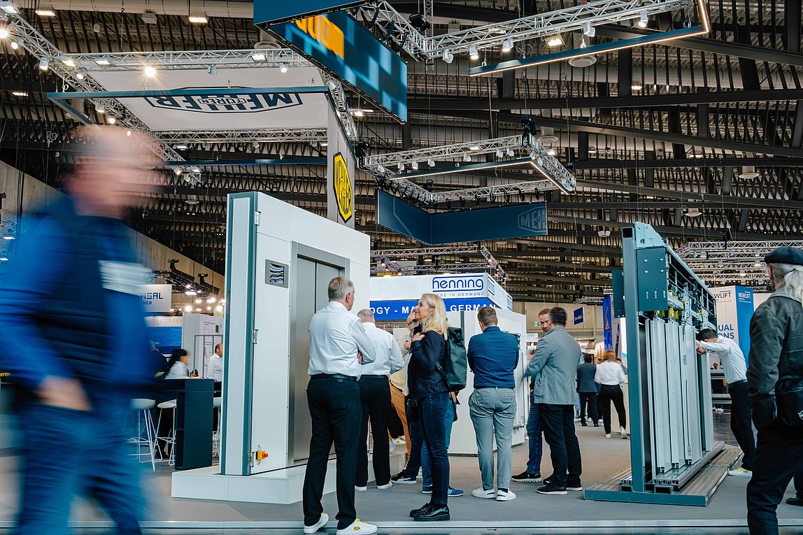 - Aufzugsanlagen, vorgefertigte Komponenten, Fahrtreppen, Laufbänder, Parksysteme, Aufzugskomponenten, Getriebe, Steuerungen, Regelungen, Überwachungssysteme, Sicherheitssysteme, Kabinen, Türen, Aufzugsseile, Bedienelemente, Anzeigenelemente, Hydraulik, Zubehör, Fachpresse, Verbände